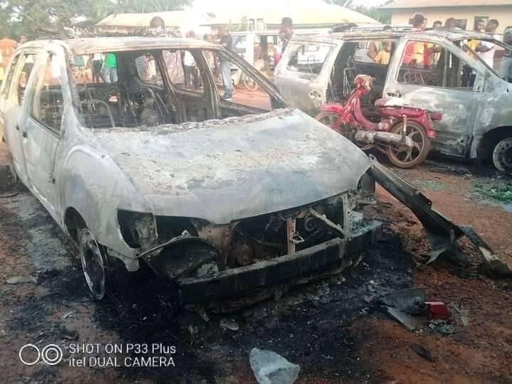 Three operational vehicles were also set ablaze by the invading hoodlums.