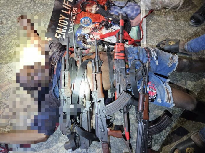 During the confrontation, the operatives recovered six AK-47 rifles with breach no; 11330, 12102, 3836, 8260, 9940, 113rounds of ammunition, a locally made gun, and two stolen vehicles: a Mercedes Benz ML 350 with reg no RRT 469 FF and a Hijet shuttle bus JRV 42 XA.