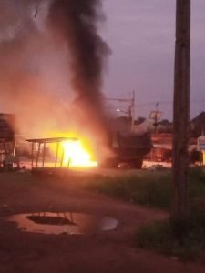 A trailer believed to be conveying goods have set ablaze by some hoodlums enforcing the Monday sit-at-home in Enugu.
