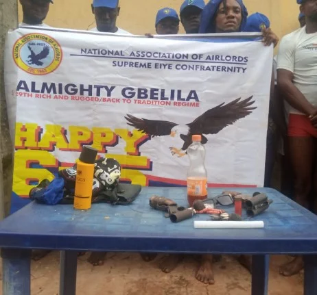 He said dangerous weapons recovered from the suspected cultists nabbed in Eiye Confraternity regalia included two cut-to-size locally made guns and one expended cartridge, among others.