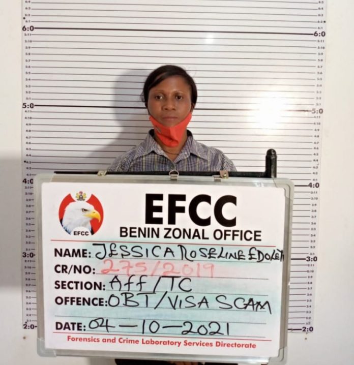 The Economic and Financial Crimes Commission (EFCC) arraigned Jessica Roselyn Edoleyi, Charles Endurance and Ayase Destiny before Justice S. M. Shuaibu of the Federal High Court in Benin, Edo State.