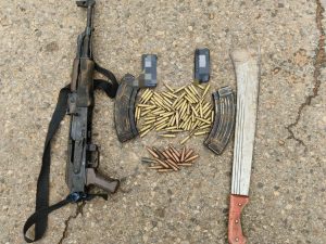 One (1) AK-47 rifle with two (2) magazines, eighty-two (82) and sixteen (16) rounds of 5.56 mm and 7.62 mm calibres of live ammunition respectively, one (1) cutlass, two (2) mobile phones and other incriminating exhibits*, were recovered from the hoodlums.