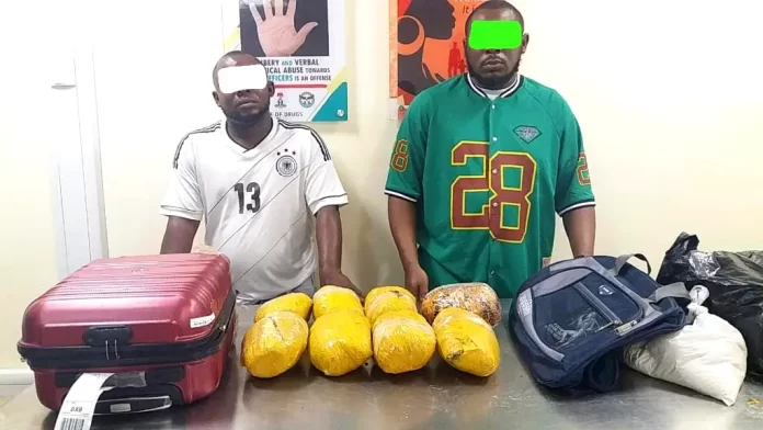 “The drug syndicate bust, which is the first drug arrest at the new terminal of the MMIA, comes on the heels of the seizure of a consignment of bottles of juice and beverages, used to conceal skunk for export to Dubai, UAE, through the NAHCO export shed on Monday, August 15.
