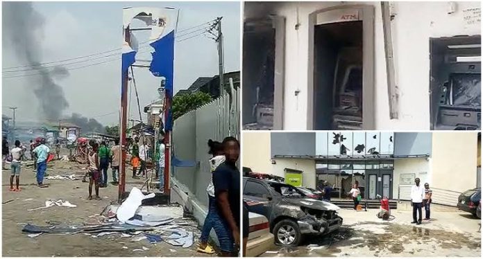 They also stormed the Sterling Bank, UBA, GTB, Access, Zenith, Stanbic IBTC and others destroying their ATMs and buildings with stones.