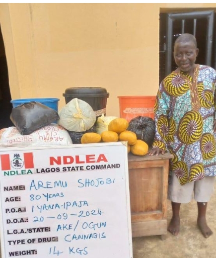 An 80-year-old grandfather, Aremu Shojobi, has been arrested by operatives of the National Drug Law Enforcement Agency with 14 kilogrammes of cannabis.
