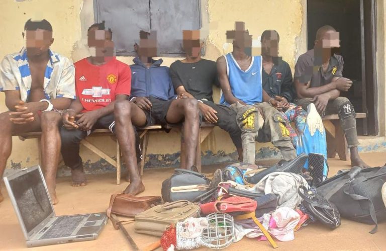 Operatives of the Enugu state police command have arrested seven criminal suspects who allegedly specialised in snatching laptops, handbags, and mobile phones within the popular Holy Ghost suburb.