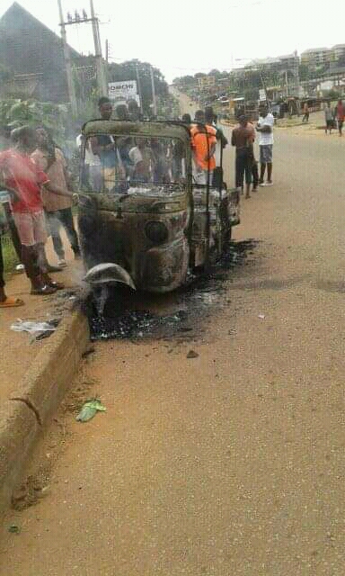 A Keke was set ablaze Monday morning at Amachi Road Junction, Agbani Road in the Enugu Capital.
