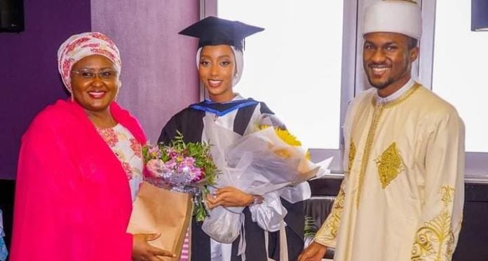 Mrs Buhari had posted a picture of herself, her son, Yusuf, and his wife, Zahra, with a caption, “Congratulations to Mrs Zahra B. Buhari on your graduation with First Class Honors in Architectural Science. Wishing you all the best.”