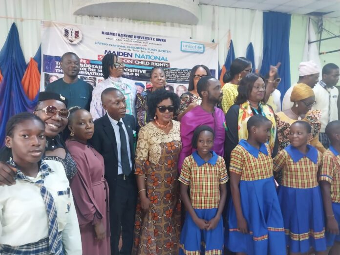 For promoting various programmes aimed at promoting the welfare and rights of children, Nnamdi Azikiwe University, Awka has honoured Mrs. Juliet Chiluwe, Chief of UNICEF Field Office, Enugu, Enugu state during the maiden National Summit on Child Rights held recently at the Awka campus of the university.