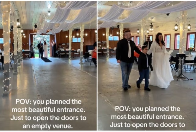 “POV: You planned the most beautiful entrance. Just to open the doors to an empty venue” Kalina (@kalina_marie_23), the bride, wrote over footage of the bleak event.
