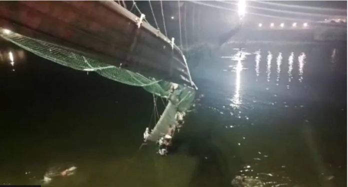 Local media quoted officials as saying that those on the bridge were performing rituals for a major religious festival when it gave way into the Machchhu river.