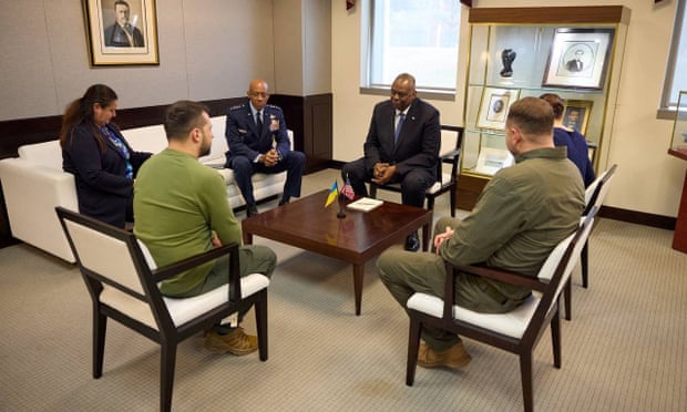 The Ukrainian leader was introduced by the US defence secretary, Lloyd Austin, who warned there was a danger in failing to provide long-term financial support to Kyiv. “If we do not stand up to the Kremlin’s aggression today, if we do not deter other would-be aggressors, we will only invite more aggression, more bloodshed, and more chaos,” Austin said.