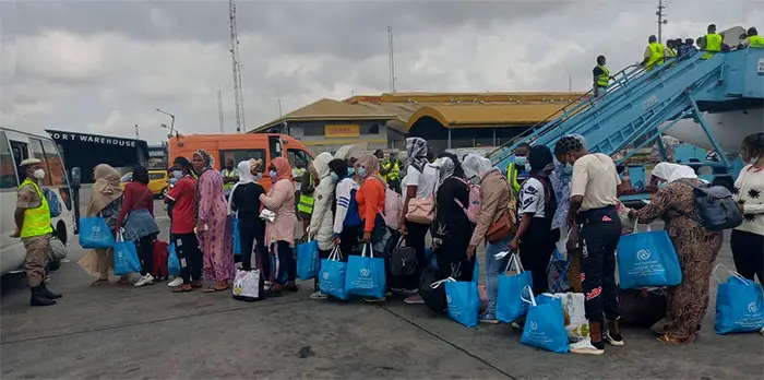 The returnees were received by the Director-General, National Emergency Management Agency, NEMA, Alhaji Mustapha Ahmed who was represented by the Lagos Territorial Office Coordinator, Ibrahim Farinloye.