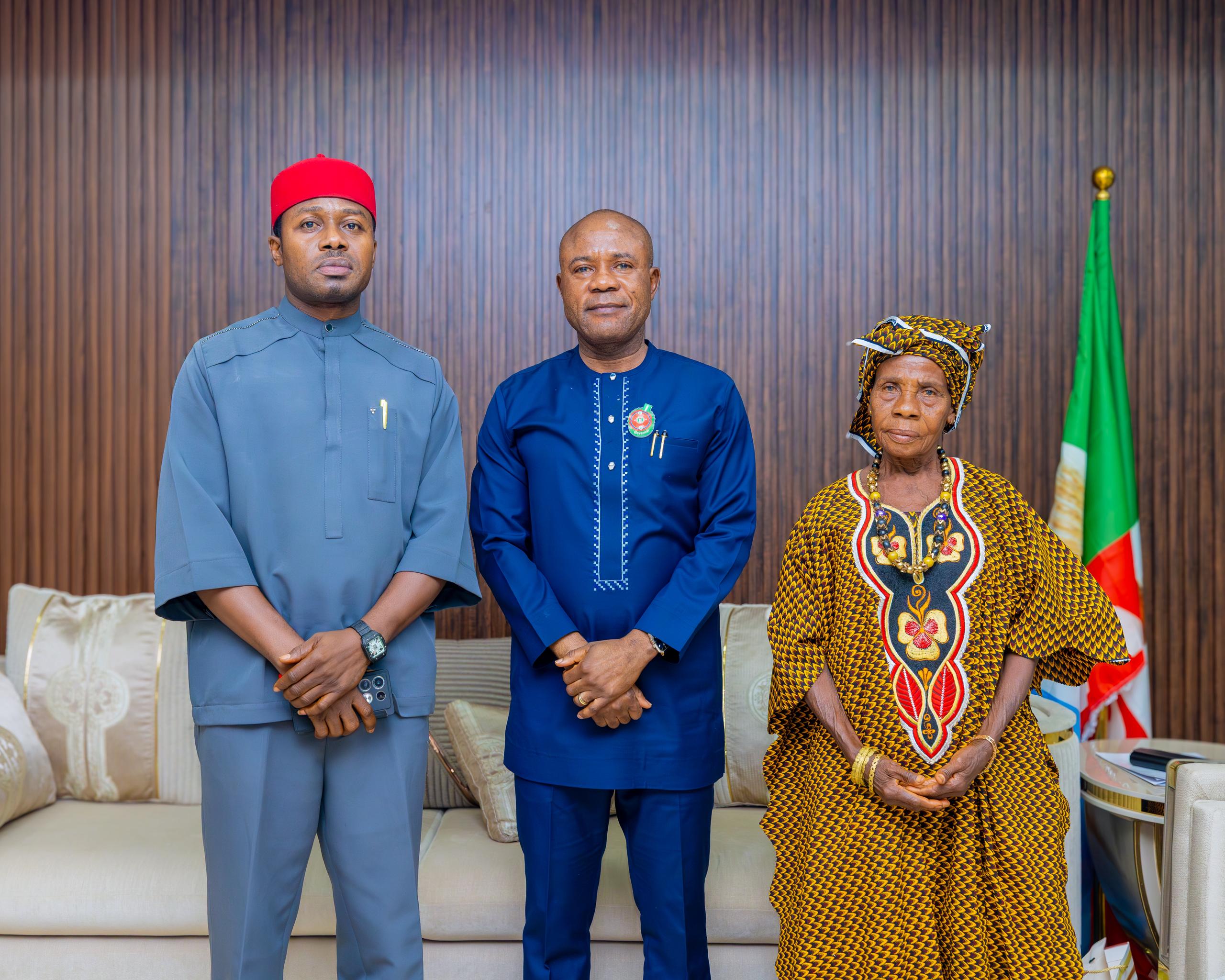 The General Manager of Enugu State Community and Social Developments Agency (CSDA) Hon Monday Diamond Ani and his mother Prophetess (Mrs) Janet Ani paid a courtesy visit to the Executive Governor of Enugu State Dr Peter Ndubuisi Mbah at Owo the country home of the Governor.