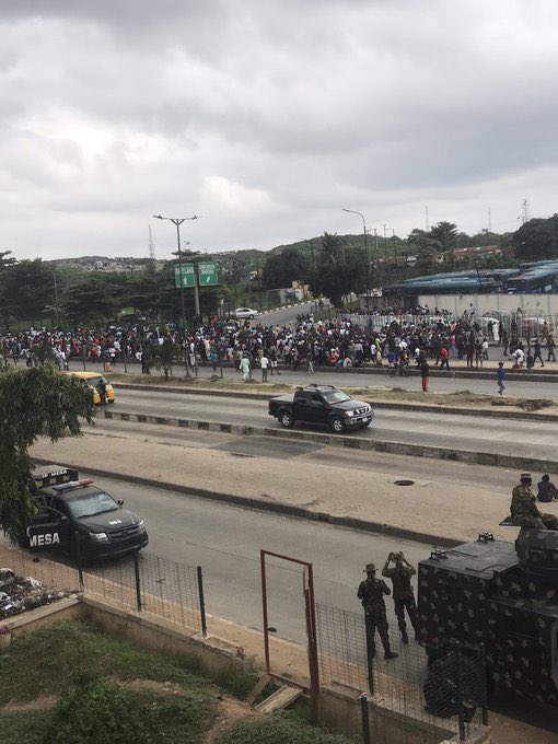 Men of the Nigerian Police led by an Area Commander had earlier appealed to the protesters to give peace a chance after the President’s broadcast.