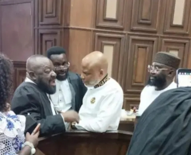 In the middle of Tuesday’s proceedings, Kanu had jumped up from the dock and ordered his lawyer, Aloy Ejimako to sit down for him to address the court.