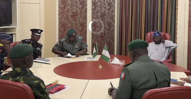 The meeting which began at 03:00 pm local time is Tinubu’s first known in-person engagement with the security helmsmen since their appointment on June 19.