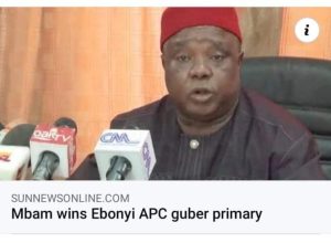 Mbam emerged as the APC candidate in a parallel election conducted at his Campaign Office, Mile 50 in Abakaliki.