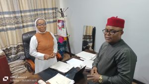He was immediately escorted into the building by the Permanent Secretary, Rev. Sr. Josephine Aniagolu, and other directors.