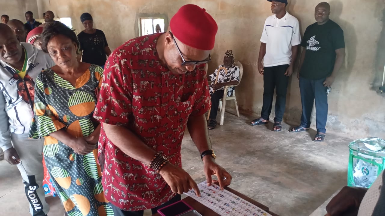 The candidate of the Peoples Democratic Party (PDP) In Udenu Local Government Area, Hon Aka Eze Aka has cast his vote in his Agamede Isienu polling unit in Obollo-Eke, Udenu Local Government Area of Enugu State.