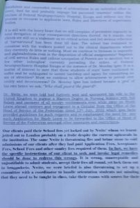 “The same Nwite is threatening fire and brimstone to void the intake admissions of our clients after they had paid Application Fees, replantee Fees, School Fees and other sundry fees required of them.