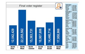 According to the figures released by the commission, the North-West geopolitical zone has the highest number of registered voters with 22,255,562.