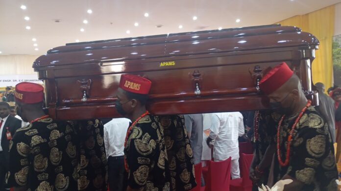Speaking at Iwuanyanwu’s laying in state at the old Eastern Nigeria Government lodge in Enugu, Governor Peter Mbah of Enugu State described the late Ohanaeze PG as an Iroko and a bridge builder who festered unity at troubled times.