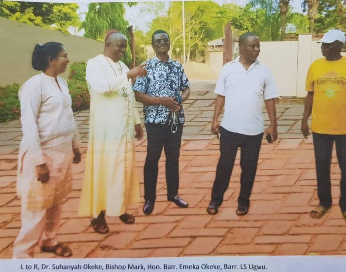 Visiting the Obuoffia country home of the Okekes, the Bishop said he recieved the news of the passing of the patriarch with empathy to the ex-Commissioner and the entire family, and that his thoughts and prayers have since been with the family for the irreparable loss. He said he was in the Okeke family home in solidarity. He prayed for the peaceful repose of the soul of the departed head of the family, extolling the virtues of the fallen patriarch who, according to the Bishop, was a renowned community and religious leader whose exemplary life and dedication to community and religious causes are worthy of emulation.
