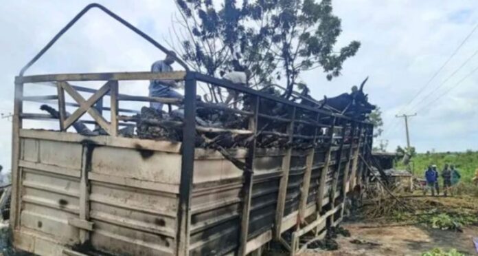 He also disclosed that over 50 cattle were also burnt alive and two other vehicles, a crane truck and a pickup van were caught in the inferno.