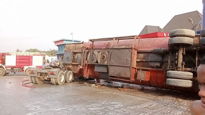 Confirming the incident in a statement, the state Fire Chief, Dr Martin Agbili, said at about 1405hrs, they received a distress call of a fallen 33,000 litres tanker while diverting to Ndumore Oil & Gas Filling Station along Onitsha-Enugu Expressway, between toll gate and slaughter, Ogbunike.