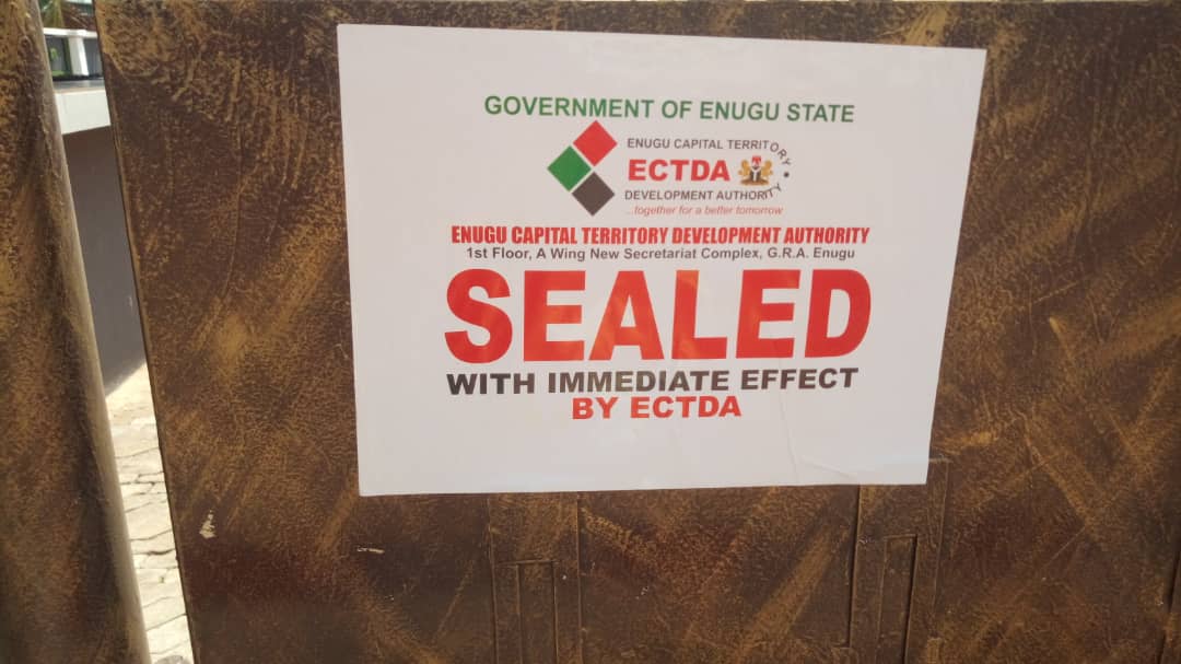 The Enugu State Capital Territory Development Authority (ECTDA) has sealed ‘Spices’ a leisure joint along Rangers Avenue in the Independence layout of the State capital.