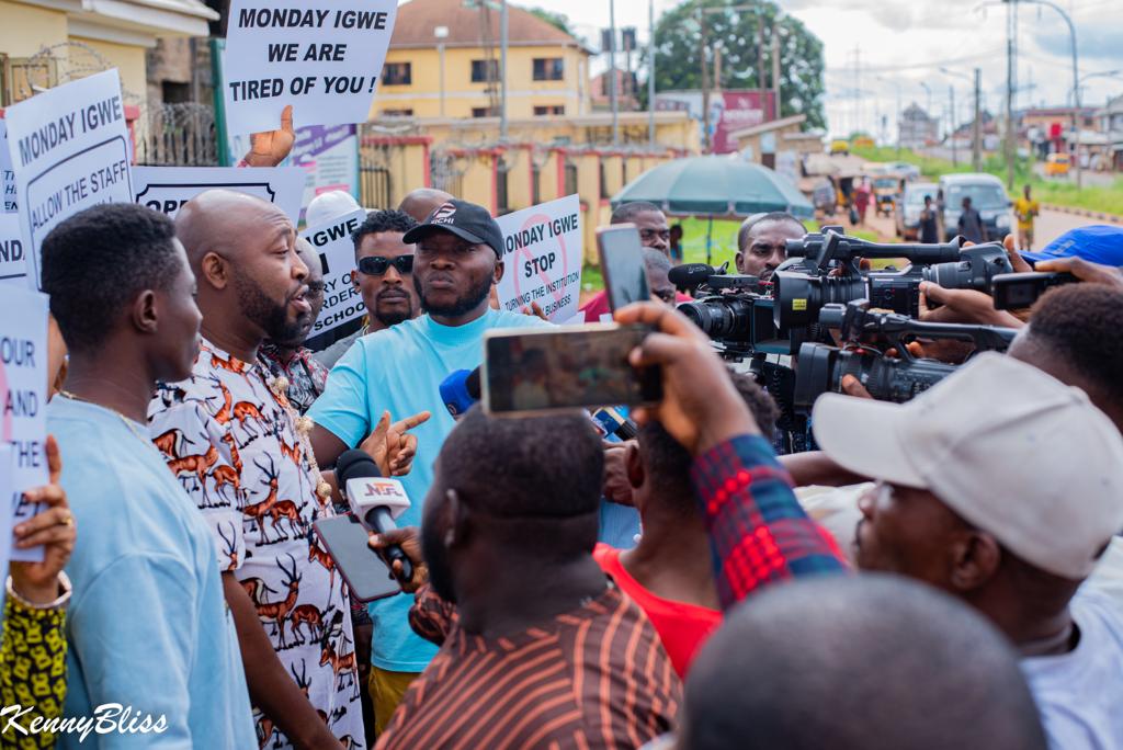 Other placards displayed by the protesters read: “Monday Igwe must step aside for investigation; Monday Igwe, obey court order; Monday Igwe, stop turning the institution into family business.