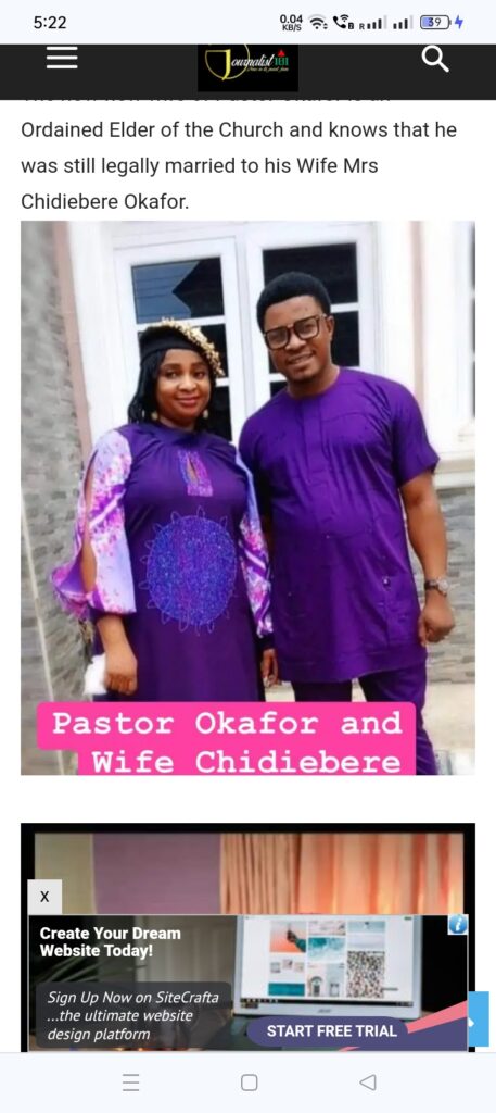 The now new wife of Pastor Okafor is an Ordained Elder of the Church and knows that he was still legally married to his Wife Mrs Chidiebere Okafor.