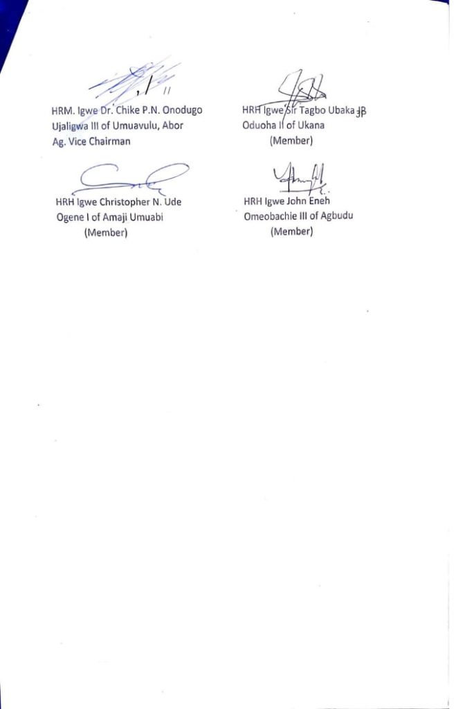 In a statement signed by the Leadership of Udi Royal Fathers, they commended the Chairman for carrying on with the removal of squatters within the Local Government Headquarters.