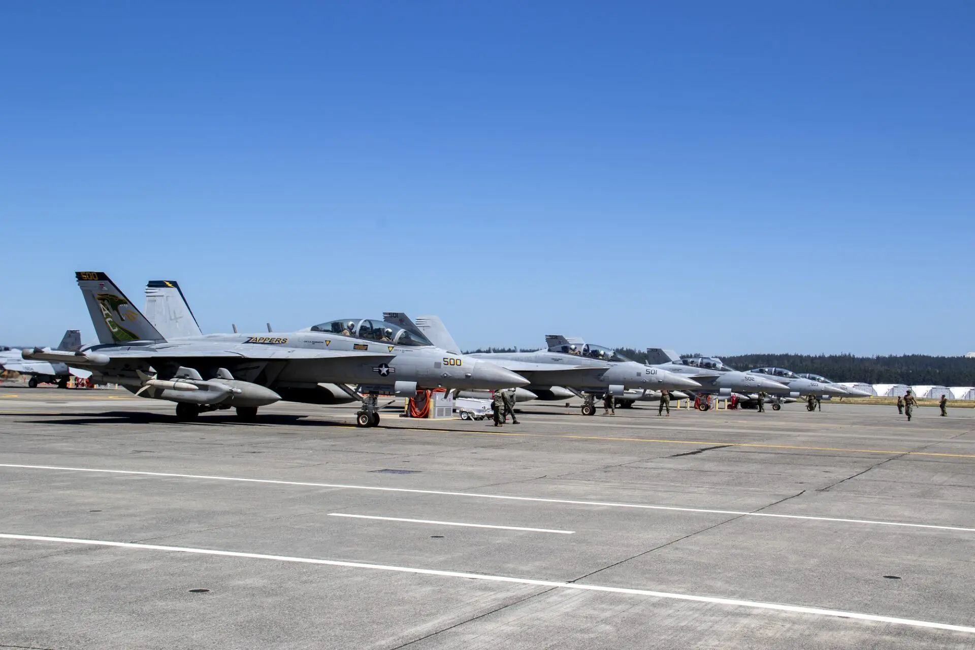 The EA-18G Growler is an electronic warfare aircraft from the “Zappers” of Electronic Attack Squadron (VAQ) 130.