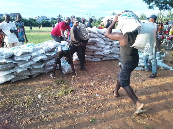 Over 2,000 25kg Bags of rice, as well as agricultural inputs such as bundles of cassava stem, herbicides, organic fertilizers, power tillers with operator’s kit, cassava graters with jack, rice threshers, communal fryers and multi-purpose grinders were distributed to both the victims of the alleged herdsmen attacks at Mgbuji Eha-Amufu and Abor isi-ala in Isi-uzo and Okpanku in Aninri LGAs.