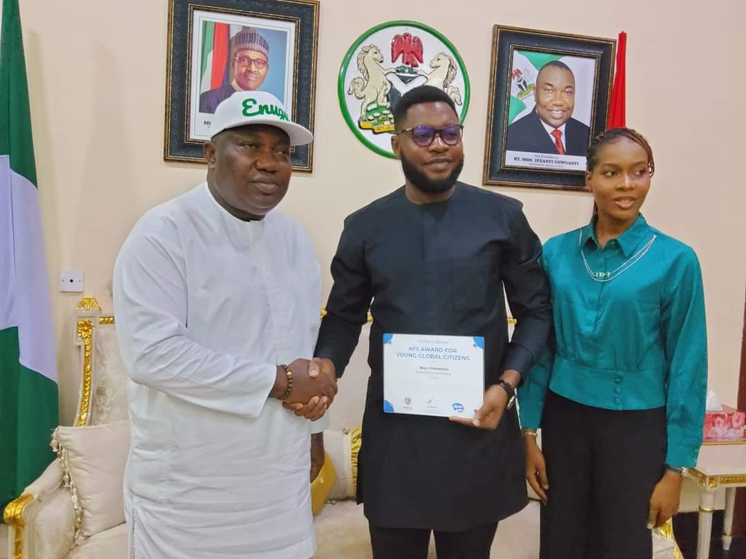 You’ve made Enugu proud, Ugwuanyi tells Alumona, winner 2022 AFS Award for Young Global Citizens