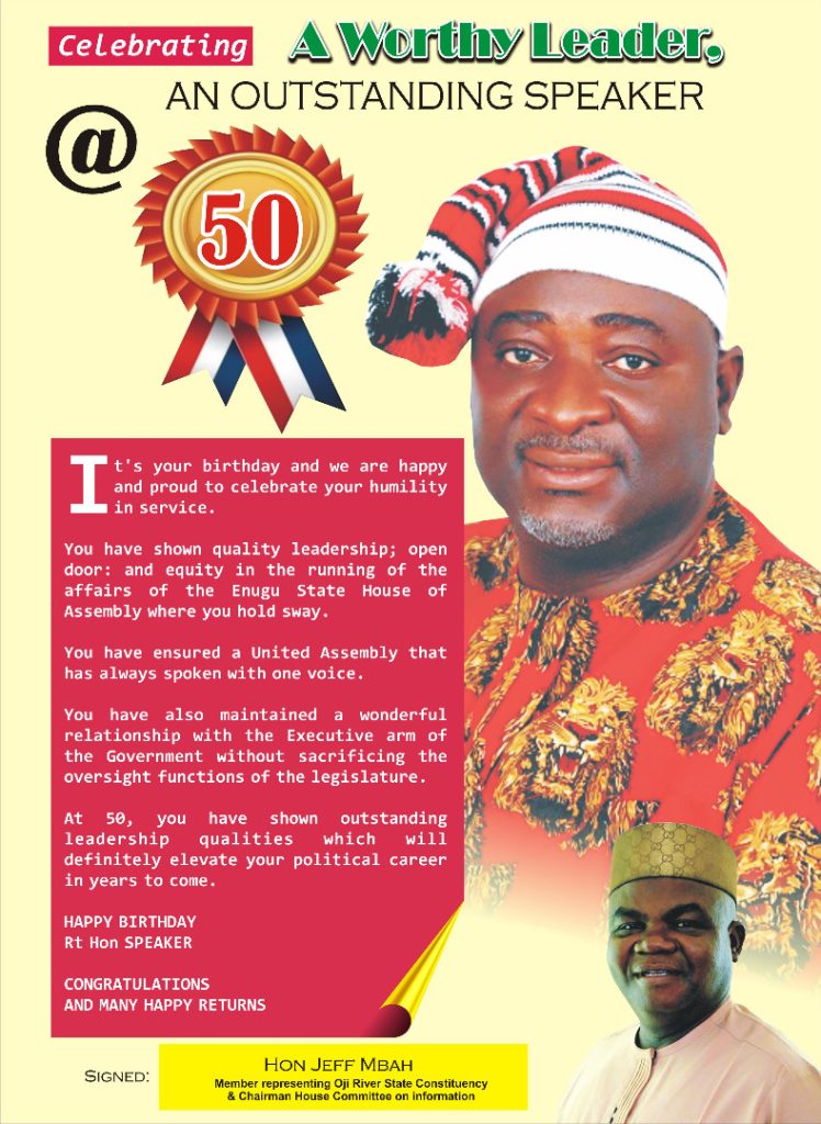At 50 Lawmaker says Enugu Speaker an outstanding leader