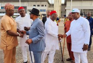 The Governors who arrived Akanu Ibiam international airport in Wike’s private jet were received by Governor Ifeanyi Ugwuanyi.