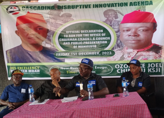 Favoured by the existing rotation arrangement in Ezeagu, Eke who unfolded his manifesto at a World Press Conference in Enugu Friday expressed confidence that he will clinch the chairmanship position in the February 24 2024, LGA elections.