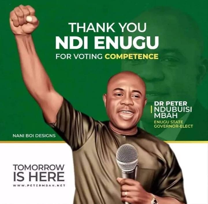 Mbah was declared winner of the Enugu Governorship election Wednesday night after two days delay that resulted from objections from opposition party agents.