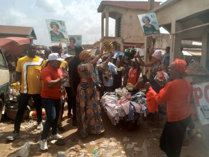 APC Senatorial Candidate for Enugu East Senatorial Zone, Princess Ada Ogbu, in continuation of her grassroots sensitization today physically stormed Afor Awkunanaw market to personally familiarise and sensitize the traders on why they need to make a loud statement at the poll come February 25, 2023.
