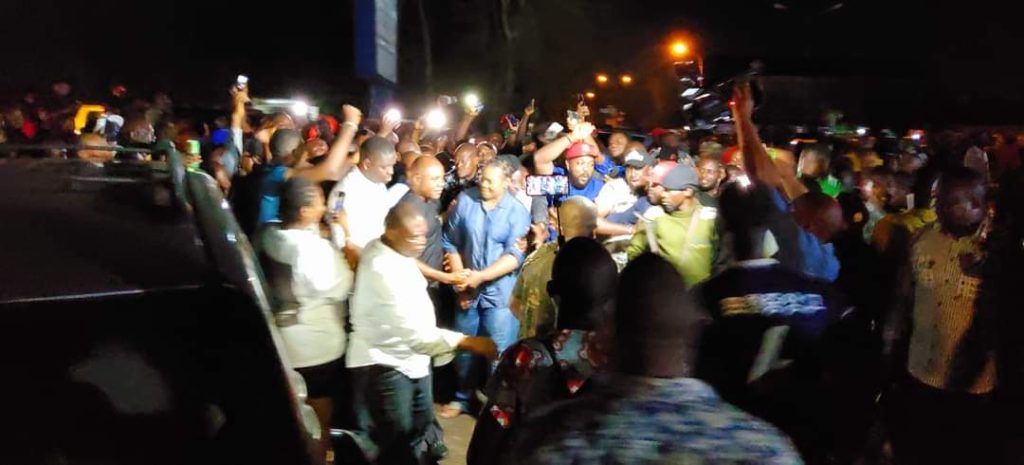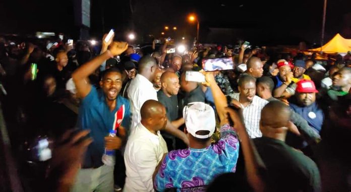 Enugu State Governor-elect, Dr. Peter Ndubuisi Mbah, makes first outing, as he pays a Thank-you-visit to Enugu indigenes and supporters of the Peoples Democratic Party (PDP) who have been occupying INEC Headquarters, Enugu since Monday demanding the announcement of the March 18 governorship election results collated from the 17 local government areas of the state by the INEC State Returning Officer.