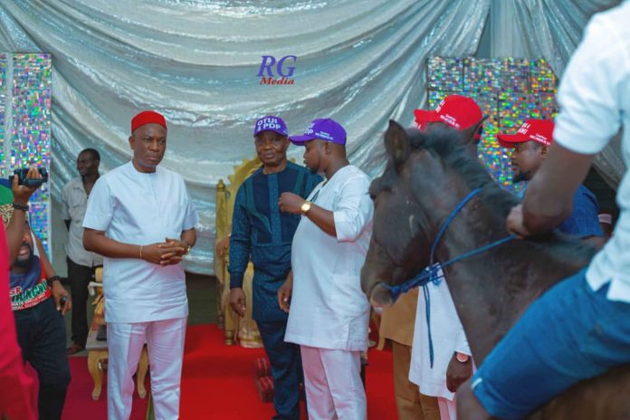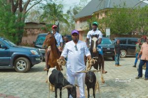 It was a rare show of support and solidarity as Senatorial, House of Representatives and House of Assembly candidates were presented with significant gifts of two horses and two rams by young Enugu politician Prince James Chukwudi Otiji.