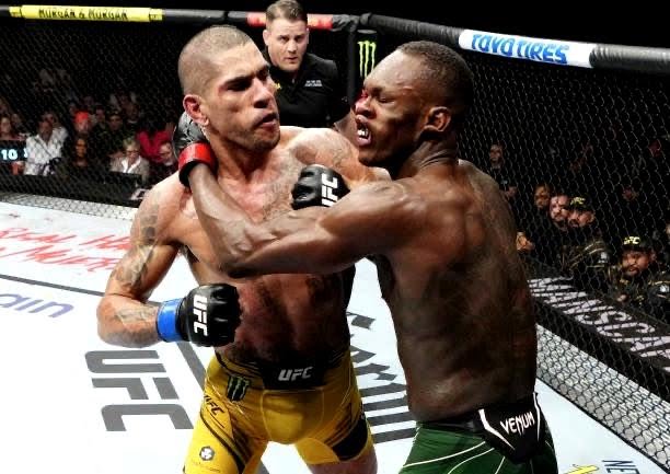 Sports Israel Adesanya loses UFC title to Brazilian, Alex Pereira (photos) By Everydaynewsngr - November 13, 2022 0 338 FacebookTwitterWhatsAppLinkedin Alex Pereira stopped Israel Adesanya in the fifth round to become the new UFC Middleweight Champion in the early hours of Sunday. See more photos below… Share this: Share on X (Opens in new window) X Share on Facebook (Opens in new window) Facebook Share on WhatsApp (Opens in new window) WhatsApp Share on Telegram (Opens in new window) Telegram Related