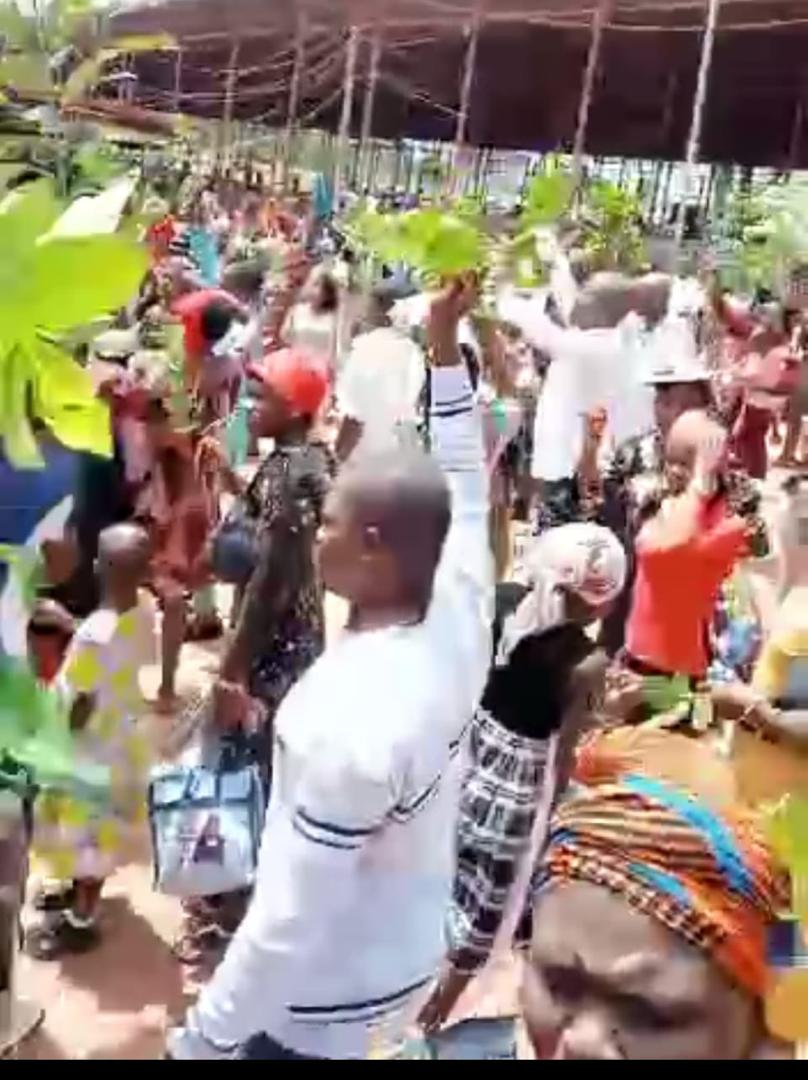However, the congregation gathered Sunday morning at the Adoration ground and started a massive protest agianst the Bishop.