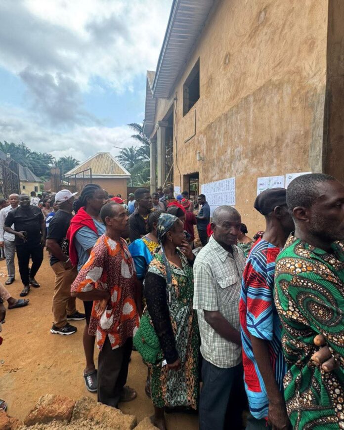 In Orumba North local government area voting started on time and security operatives where on hand to douse the near violence that would have erupted in Orumba North local government area following allegations that some officials of INEC were hudding materials.
