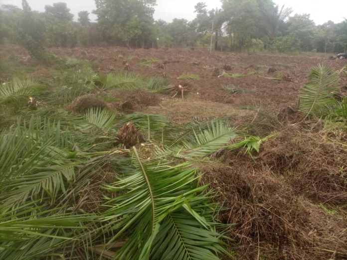 Ugwuagbo who conducted newsmen round the farm on Monday narrated that his labourers were attacked on Sunday, chased out from the farm, uprooted over 100 palm trees of Eight years old and claimed ownership of the land.