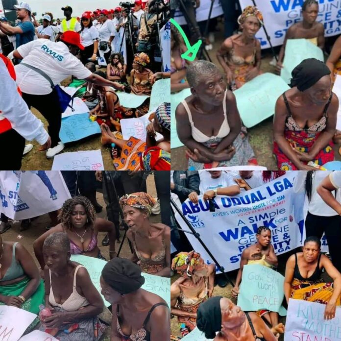 In good conscience, can any reader truly deny the fact that these women, who can’t read nor understand the messages contained in the placards handed to them, were rented and hired and specifically directed to come half naked and walk the streets of Port Harcourt, from CFC junction to Polo Club in GRA phase 2, Port Harcourt for an offer they choicelessly because of striking hunger, couldn’t resist?