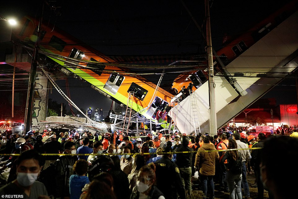 Sheinbaum said that a broken beam caused the accident on Line 12 and that people were trapped in one of the cars. ‘We don’t know if they’re alive,’ she said.